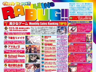 HOME > BugBug > BugBug 【激推しレビュー】レベル1『シロウト家出娘と俺 Sweet Days』を徹底レビュー!! 本編ヒロイン・夏帆との制服Hやサブヒロイン・心寧との搾精Hを楽しめる♥ 2026/3/2 【BugBug】3月号では『あざらしラッシュ倍倍CHANCE!』についてロングインタビュー!! 6ヶ月連続新作発売のインパクトと共に各作品の魅力に迫る★ 2026/3/1 冬だからこそ夏の孤島でリゾートを楽しみたい!? 「月末エロゲの日」発売タイトルに注目が集まったBugBug.NEWS・2/21〜2/27の人気記事ランキング 2026/3/1 明日3月2日(月)まで!! 原画・こ~ちゃ氏描き下ろし!! Cuteuphoria『ドラ・コンカフェ2』アルモのB2タペストリー2種類を急いでGET!! 2026/3/1 【本誌復活レビュー】『妻は今夜も奪われる』(DWARFSOFT)を激シコレビュー!! 調教サレ済みの妻が再調教され続ける鬱勃起しまくりのNTR系AVG 2026/2/28 【BugBug】3月号の「BugBug声優STATION」では叶一華さんが登場!! ヌキゲーからシナリオ系大作まで幅広い場で活躍する実力派声優の素顔に迫る♪ 2026/2/26 【BugBug.NEWS DLsite出張版】アテナちゃんのおかげで本コーナーがBugBug本誌へ逆出張!?【VOL.29・2026年2月第1号】 2026/2/26 【激推しレビュー】CHAOS-L『LADY FRANKEN!』を徹底レビュー!! 背徳感を感じさせる多彩なエロスと徐々に成長していく未莉亜が新たなオキニに!! 2026/2/25 【本誌復活レビュー】『New Breeder ~エッチな獣娘を狩って自分好みに調教!~』徹底レビュー!! 二人の獣人ヒロインを調教してアリーナを勝ち抜くAVG 2026/2/23 いつもより日にちが少なくて忙しい2月の合間を縫ってみんながチェックしていた記事は? BugBug.NEWS・2/14〜2/20の人気記事ランキング 2026/2/22 【激推しレビュー】ZION『生イキJKが語る痴漢電車 HD版』を徹底レビュー!! 強気な制服JKが多種多様な痴漢に襲われる激シコ痴漢ゲームがHD版で再登場★ 2026/2/22 【本誌復活レビュー】『幼馴染と生意気義妹 ~ブルマと水着の誘惑~』激シコレビュー!! タイプの異なる二人のヒロインによる優柔不断な主人公の争奪戦 2026/2/21 〆切りまであと10日!! 原画・こ~ちゃ氏描き下ろし!! Cuteuphoria『ドラ・コンカフェ2』アルモのB2タペストリー2種類の応募〆切りが迫る 2026/2/20 【激推しレビュー】しばそふと『ママ×カノEX』を徹底レビュー!! 母娘ヒロインとのイチャエロ満載の人気シリーズが中世ヨーロッパ風の世界観で新登場 2026/2/16 【B-mail】「コロナ以後初めて冬コミに参加するので楽しみです」 BugBug1月号のアンケートハガキで送られてきた読者からのコメントを大紹介!! 2026/2/16 マニアックな性癖ジャンルの尖った作品とそれを求める人たちの幸せなマッチング会場に!? BugBug.NEWS・2/7〜2/13の人気記事ランキング 2026/2/15 【激推しレビュー】アトリエさくら『脅され妻・美波』を徹底レビュー!! 仲良し夫婦の絆が試されていく寝取られ展開──だが実はNTR初心者もにオススメ♪ 2026/2/15 お正月休みでゆっくり過ごしたり帰省やイベントで忙しかったりする年末年始でみんなが読んでいた記事は? BugBug.NEWS 5年9ヶ月目の人気記事ランキング 2026/2/14 【本誌復活レビュー】Miel『チート緊縛術で爆乳孕ませハーレム!』を爆ヌキレビュー!! 和服爆乳美女たちをチート緊縛術でハメ堕としていくAVG 2026/2/12 【BugBug】電子書籍版BugBug3月号は本日配信!! 美少女ゲーム春商戦を盛り上げる話題作の最新情報をスマホやタブレットでお手軽に楽しんじゃおう♪ 2026/2/10 1 2 3 … 66 Next »