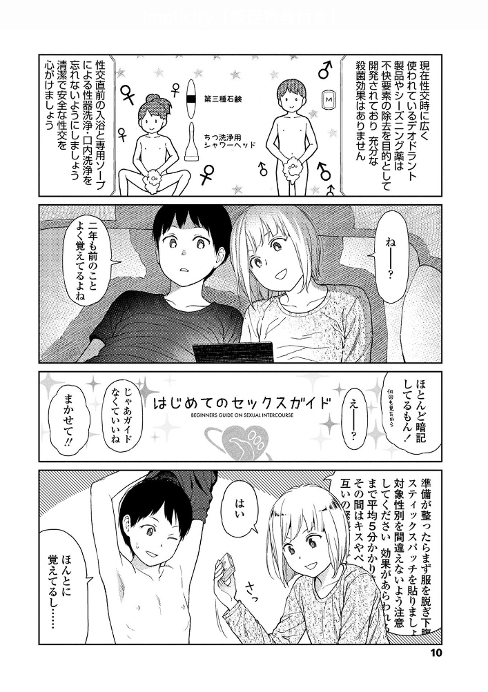 通常は著者の過去作を紹介するが、研そうげん氏はこれが初単行本だったので、ちょっと趣向を変えてSFモノやサブカル系の尖ったエロ漫画でオススメ作品を紹介。まず東山翔氏の『Implicity』は、ロリ漫画の皮を被ったポストアポカリプスモノ。ハードなロリ凌辱や猟奇的シーンも凄いが、何より圧倒的画力で描かれる廃退した世界観と少女の無垢な美しさとの対比が素晴らしい。実は極上のボーイ・ミーツ・ガールでもあるストーリーを、全2冊の長編で堪能しよう。もう一つのオススメは、謎のドイツ人漫画家・ゲズンタイト氏の1stコミックス『#ふつうのおんなのこ』。販売サイトで「深層心理ランデブー」1話24Pが丸々掲載されていたのでこちらにも転載したが、これを読めば作者の鬼才ぶりは一目瞭然。サイバーパンクではないが、奇想天外・摩訶不思議なエロスで、トリップ出来ること請け合いだ。