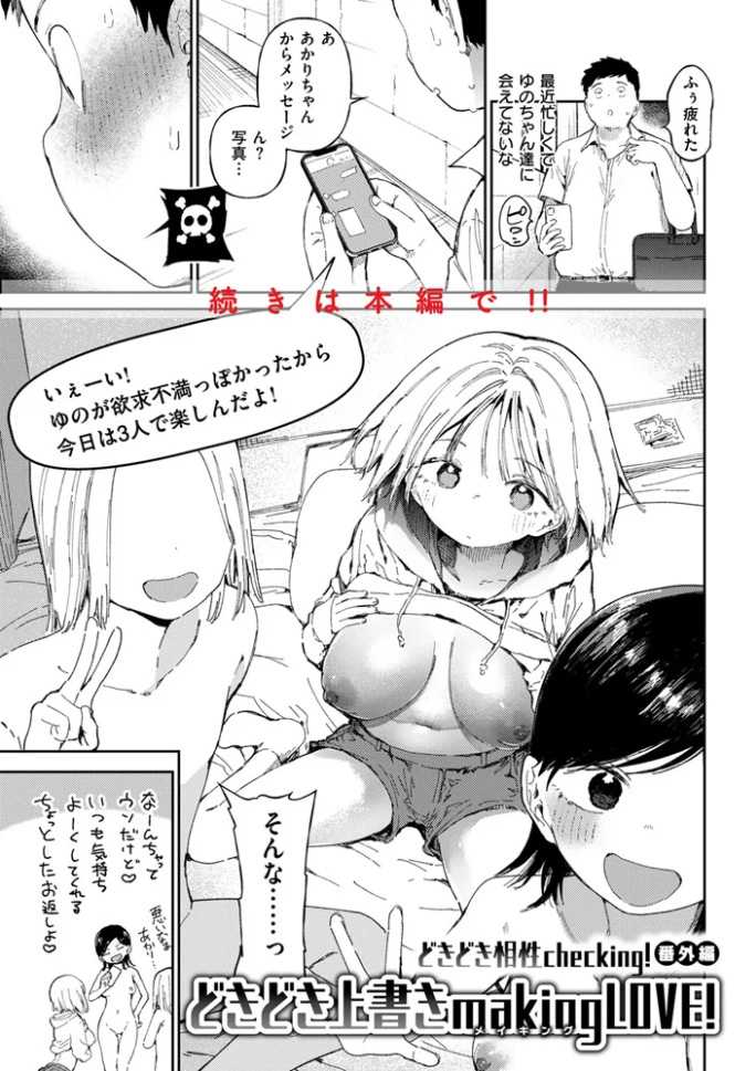 単行本版化に当たり収録の6編全てに大幅加筆修正が施された他、描き下ろし漫画『どきどき相性checking! 番外編』を収録。さらにデジタル版限定にはオマケのショート漫画『どきどき上書きmakingLOVE! 』が収録されている。今どきのドスケベ背徳エロスを存分に味わおう。