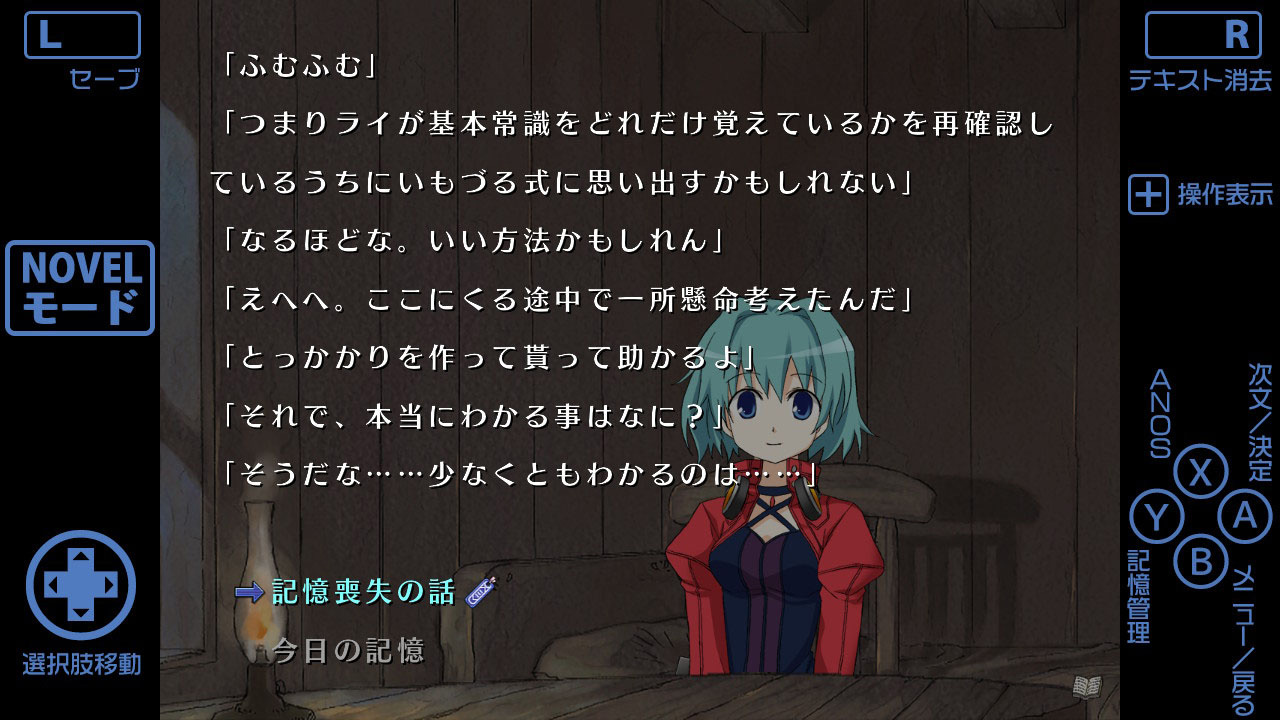 本作は、ノベルゲームでありながら高いゲーム性を生み出すシステム「ANOS(Advanced Novel Operation System)」を採用した作品。多層的立体的に積み重なっていく累積型シナリオとなっている本作の特徴は、どの時点からでも別の分岐に戻って辿り直すことができる点にあり、すでに辿った分岐で得た記憶を他の分岐で使用することにより、新しい展開が発生するようになるのだ。これらの行為を能動的に行うことを促進、補佐するシステムが「ANOS」で、高いゲーム性を生みだす礎となっているぞ。