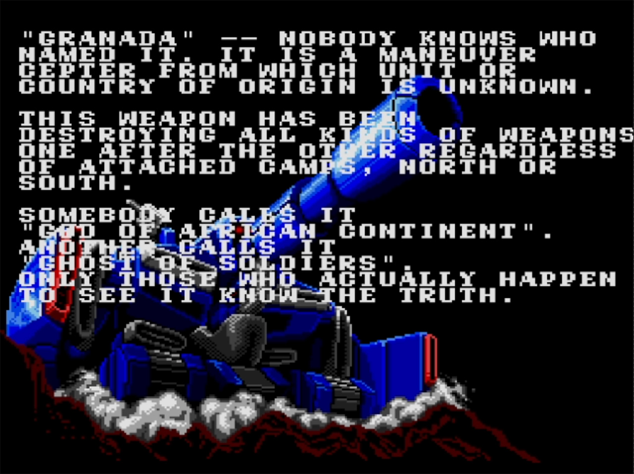 グラナダ伝説、真実は出会った者だけが知る…。プレイヤーは、戦車型の機動兵器グラナダを操作。ステージ上のクリアポイントを破壊しつつ、最後に出現するボスを倒すとステージクリアとなる。進行方向以外への攻撃をどうするかが攻略のカギとなる、手ごたえ抜群の全方位スクロールシューティングゲームだ。