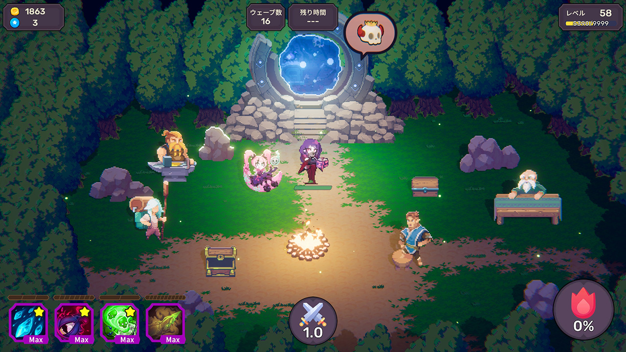 一方、キャンプでは多彩な武器や魔法を購入することが可能。キャラクターに合わせた装備をセットし、ステージ攻略を優位に進めよう。ゲームモードも豊富なので、キャラを強化しながら繰り返し挑戦できる、やり込み要素も充実したゲームとなっているのだ!!
