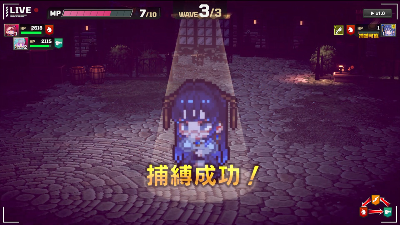 ▲戦闘の勝利条件は敵将の「捕縛」または「処刑」。「捕縛配信」を流すとリリィのスキルで敵将を生け捕りできる。捕らえた将は味方になってくれるぞ♪
