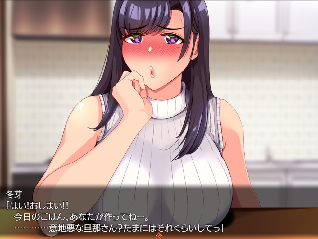 行動選択型のSLGとなる本作では、ヒロイン・冬芽の夫である主人公(プレイヤー)が、「平日」「休日」「夜」の行動を自由に計画して、ストーリーを進めていくのが基本的な流れ。その進め方次第で、「平日」の出社中、冬芽に他の男が接触してきたり、はたまた家に上がり込んできたりと多岐に渡るNTR事案が発生するぞ。また「休日」には普通のデートや露出デートに出掛けることができ、「夜」には冬芽との会話を楽しんだり、夜露出で妻との仲を変態的に深めたりすることも可能になっている。NTRをメインにイチャラブからアブノーマル露出まで、夫婦関係の淫らな変化によるバリエーションに富んだエロ展開を愉しもう♪