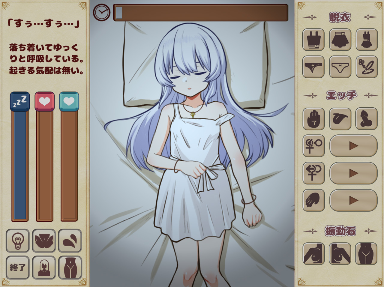 ▲フェリスの就寝中は、夜這いのチャンス。コマンドパレットを操作して、彼女を起こさないようにHなイタズラをしちゃおう♪