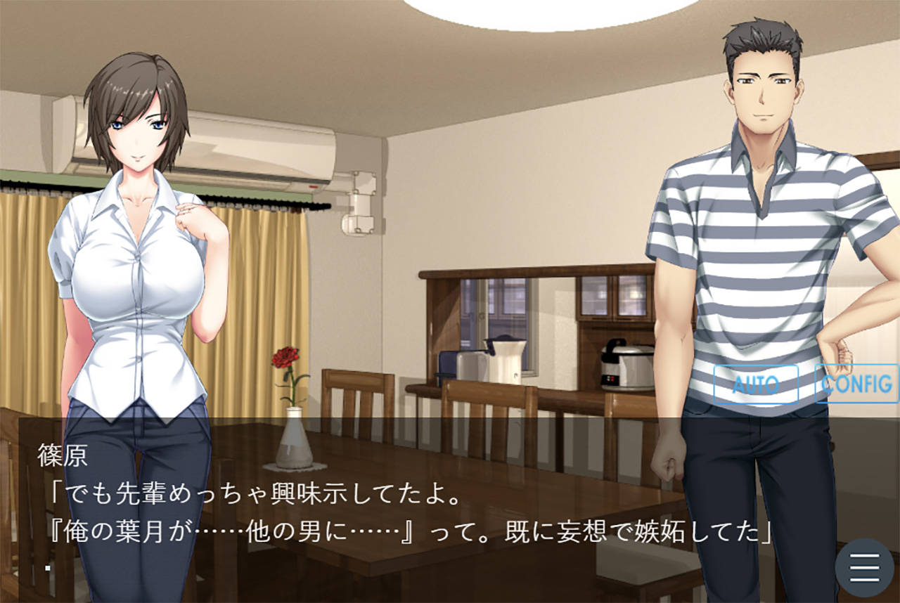 ノベルAVGとなる本作は、寝取られ性癖に目覚めた主人公が、愛する妻を共通の友人に貸し出す王道の寝取らせストーリー。