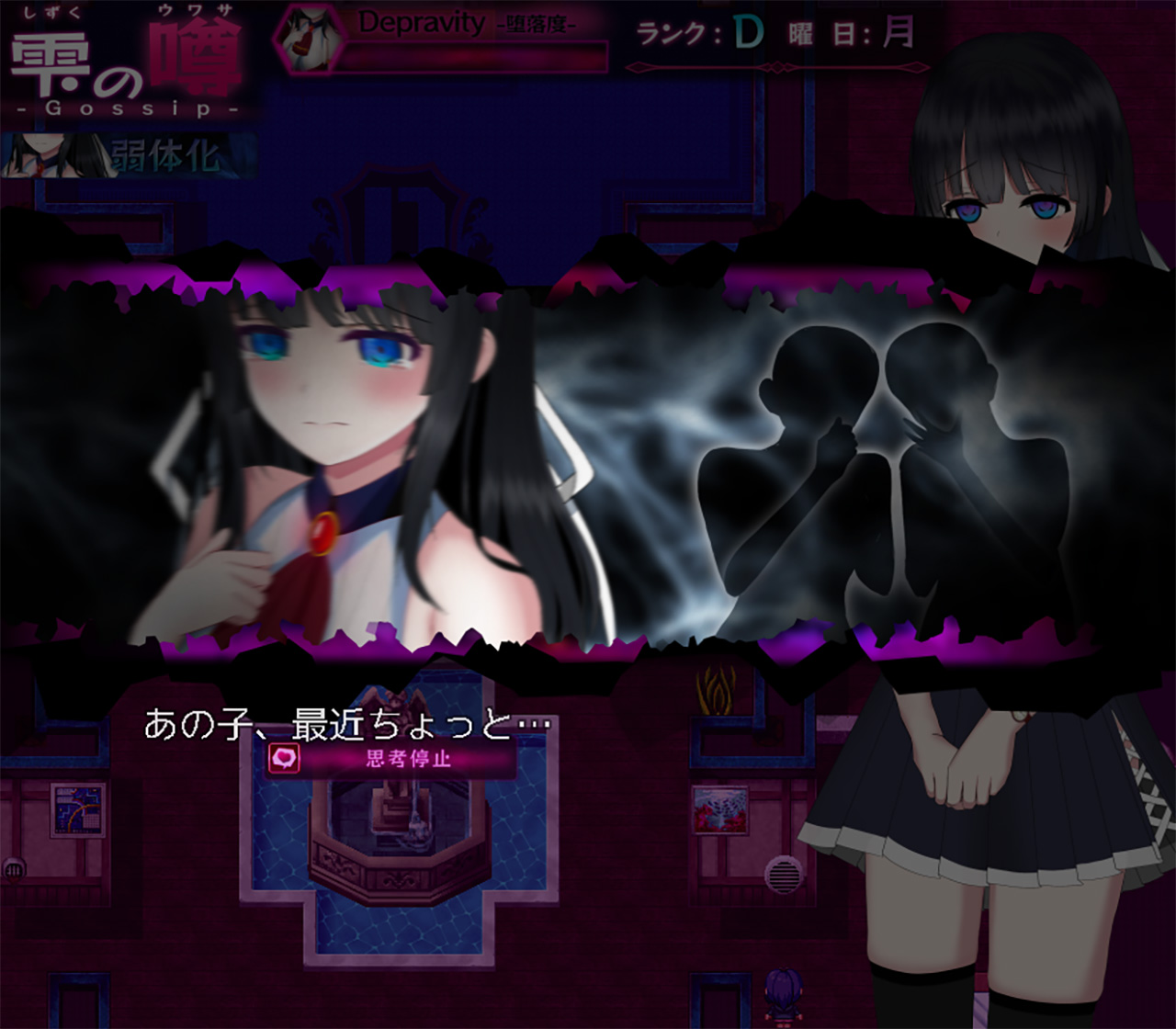 ▲カースト学園に単身潜入し、戦いに挑んでいく雫(CV:天野すあま)。学園内で特定の行動をすると彼女の悪いウワサが流れ、その後のHイベントに影響を与えることも…