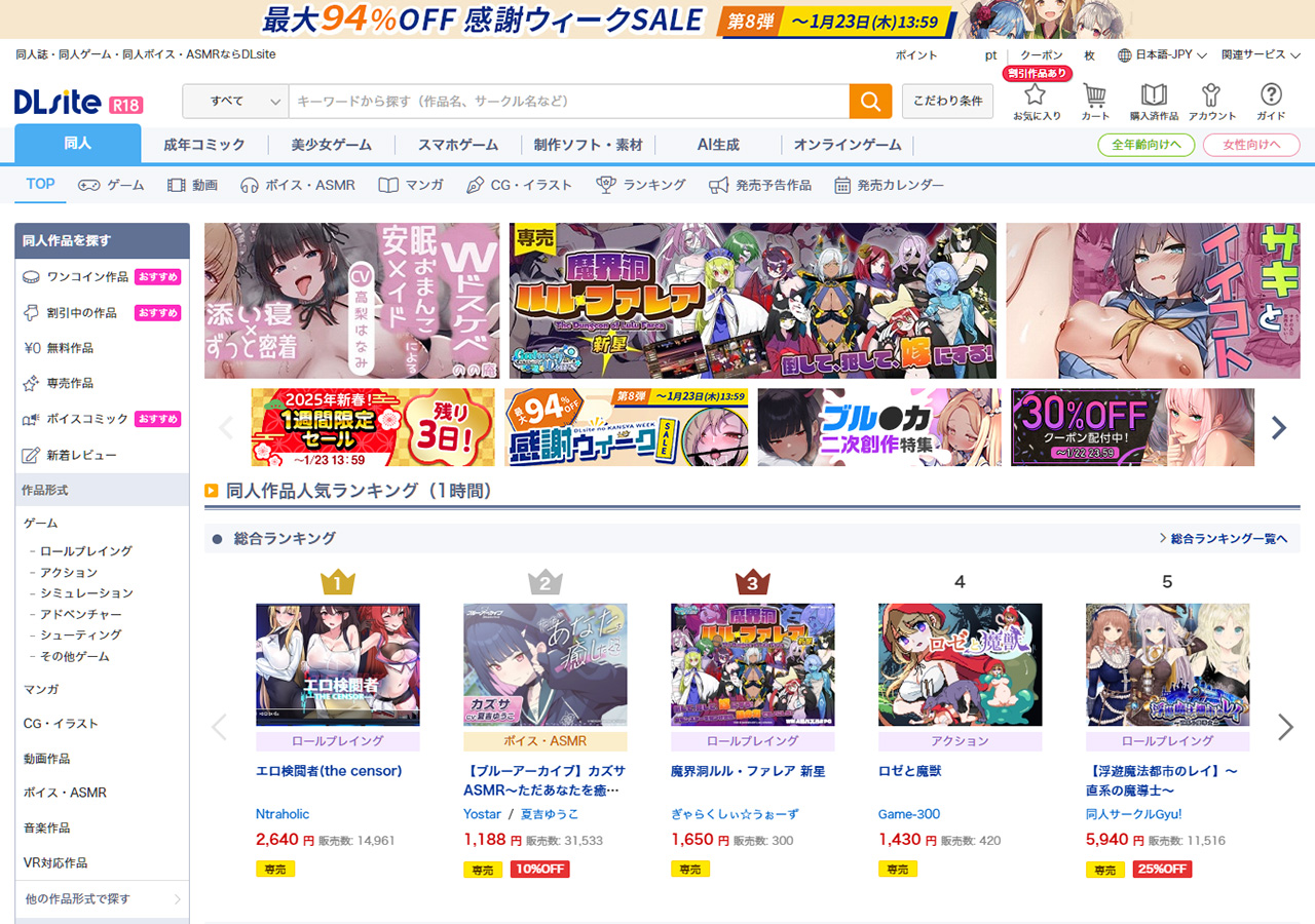 一方、FANZAでは「FANZA冬の同人祭」を2025年2月3日(月)11:59まで開催中。