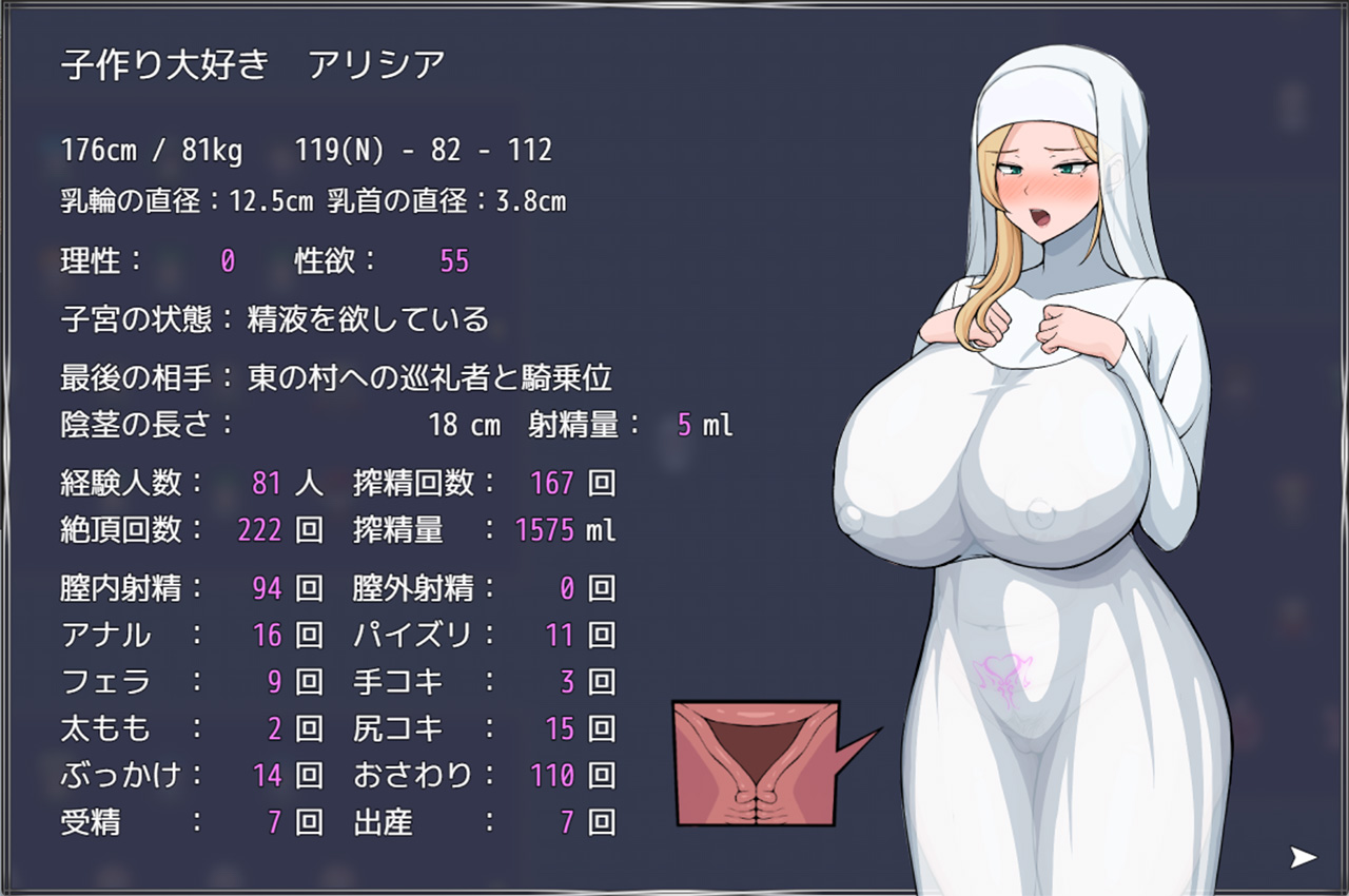 根っからの淫乱熟女シスターが抗う間もなく即堕ちする、ド直球な女性視点エロRPGとなる本作。