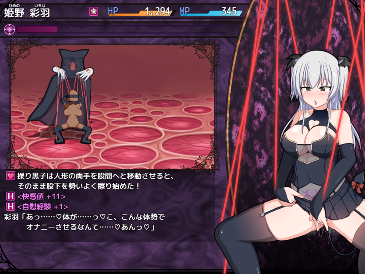 ▲サキュバス状態の時も当然、彩羽はエロエロな目に…。戦闘エロに加えて、イベント型のHシーンも多数用意されているぞ