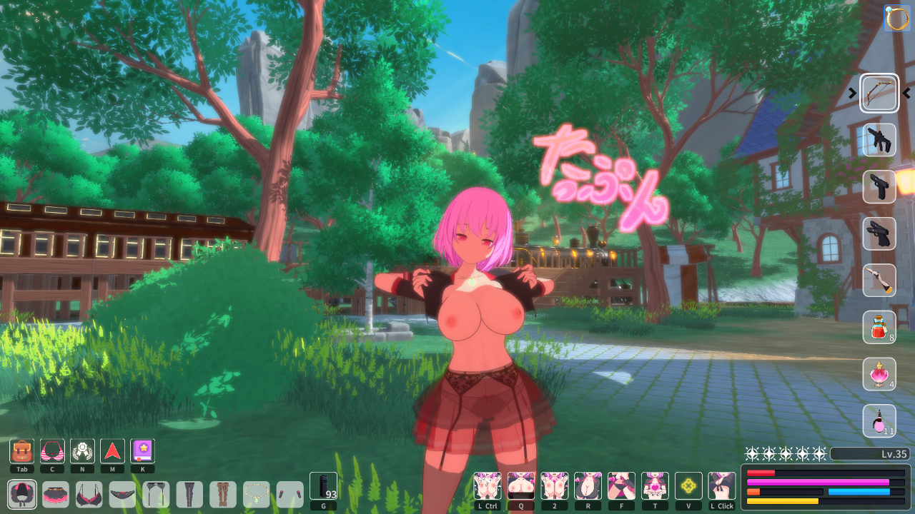 自由度の高いオープンワールドな世界の探索と、実用度バツグンなエロ要素が融合した本作。基本的な目的は一切設定されておらず、島の探索をするも、村人と交流するも、敵と戦うも、主人公の成長を楽しむも、すべてはプレイヤーが自由に決められるようになっている。