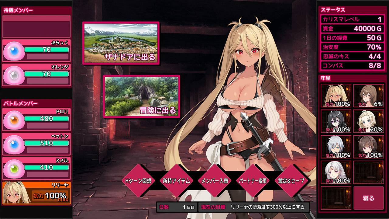 ▲拠点では、捕らえた少女たちにさらなる快楽調教を。「堕落度」を上げていくことで、最終的には全てのヒロインを自分の配下にできるぞ