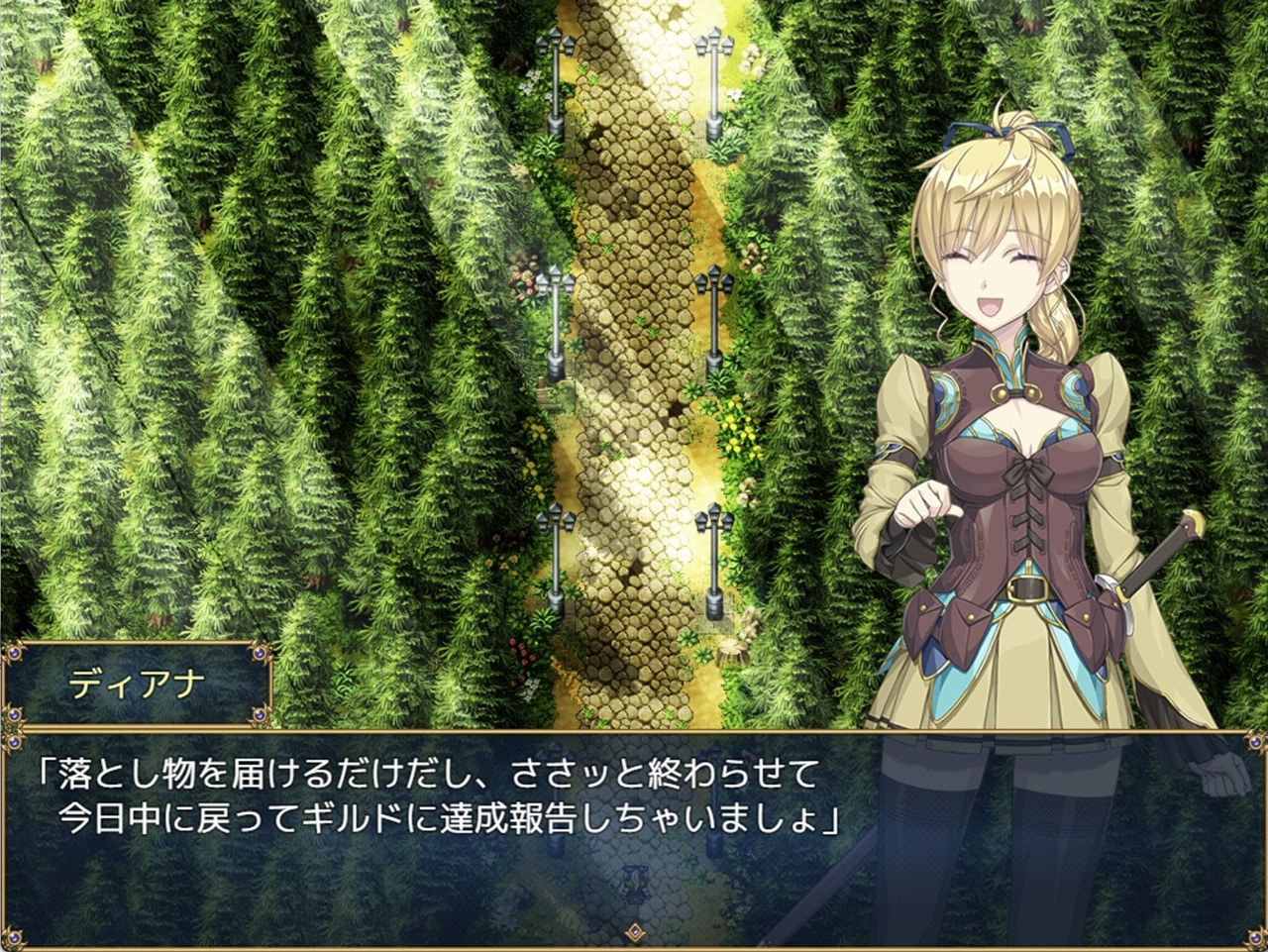 本作は、没落した家門の汚名をそそぐため、箱入り娘の主人公・ディアナが冒険者となって奮闘する王道ファンタジーRPGだ。