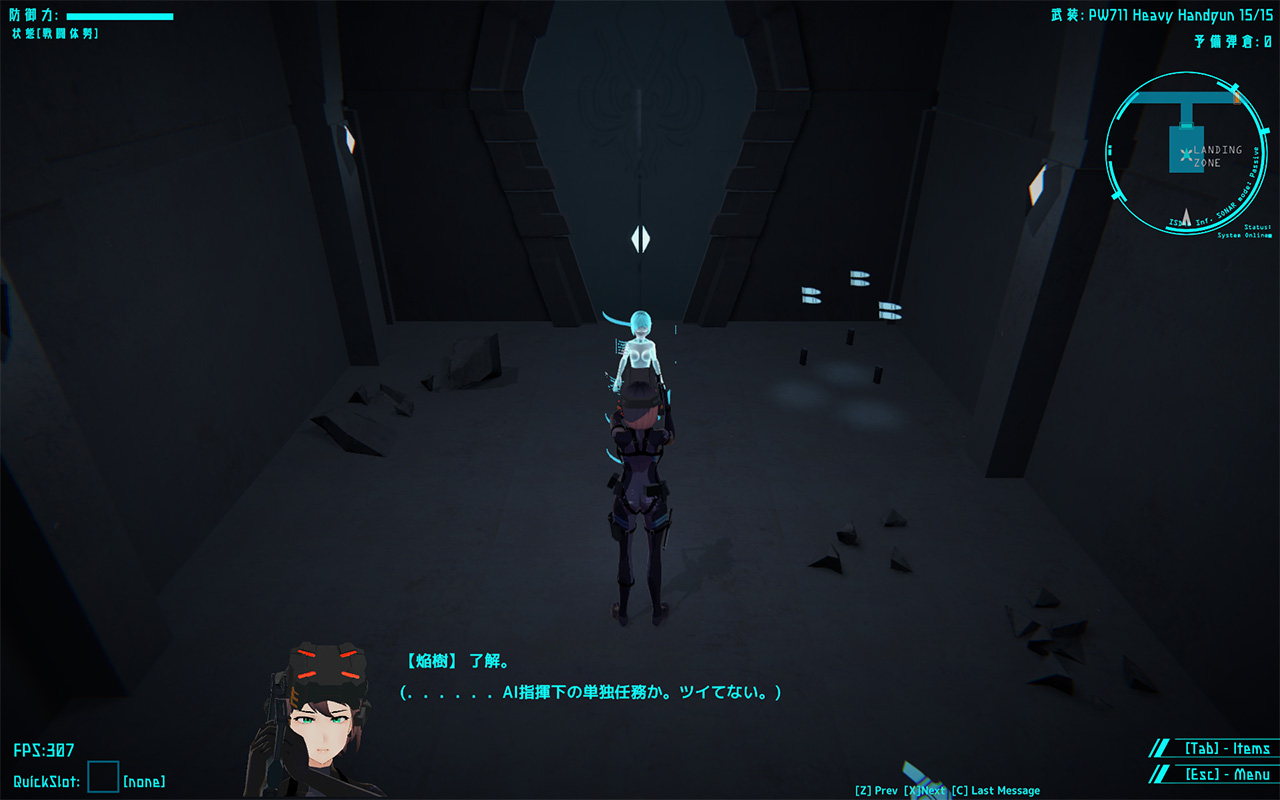 ▲使い捨ての生体兵器として、味方部隊の追跡を命じられる焔樹。冷酷なAIに従いつつも、彼女は消された記憶の手掛かりを探っていくことに…