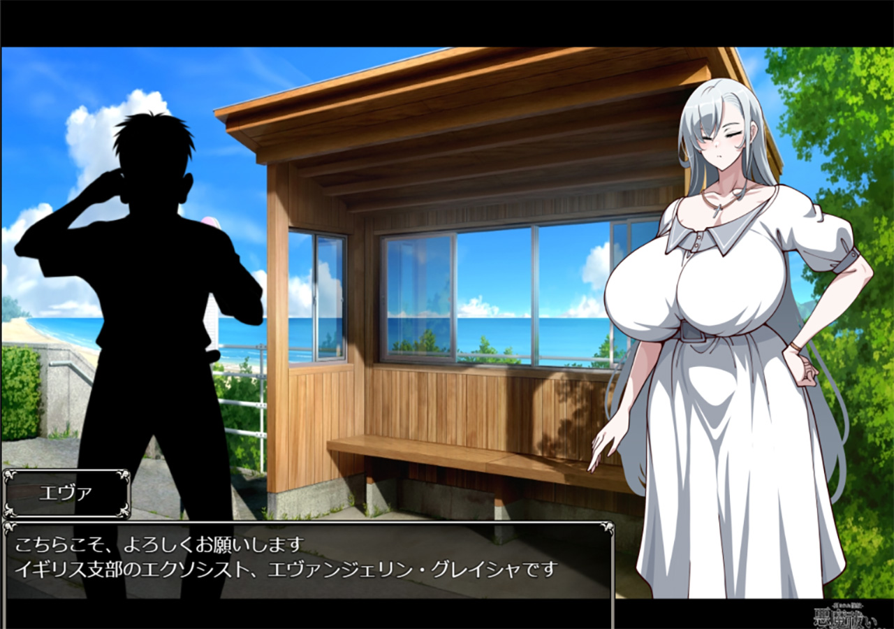 ▲爆乳エクソシストのエヴァンジェリンが、悪魔召喚士を追って異国の地である日本へ。シリアスな任務の裏側では、愉快な島民たちとのドスケベ交流が待っている♥