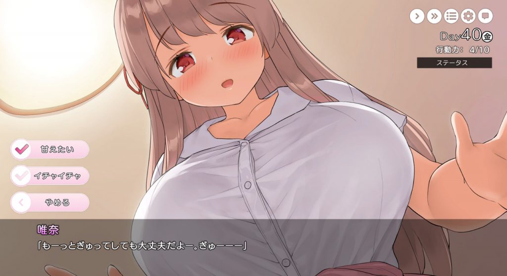 ▲本作にエンディングはなし。唯奈と恋人関係になるもよし、プラトニックに仲良くし続けるもよし、ず~っと続くお姉ちゃんとの甘い生活を楽しもう