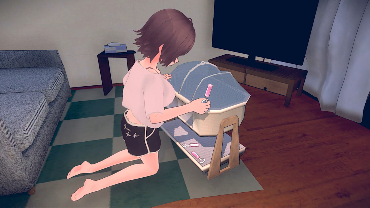 本作は、ヒロインにして娘である少女・まいと、その父親であるプレイヤーが営む日常生活のリアリティを追求したSLG。屋内限定のオープンワールド作品のような作りになっており、1日の時間に沿って家の中を自由に行動する彼女に対して、プレイヤーも自由に干渉することができるようになっているのだ。