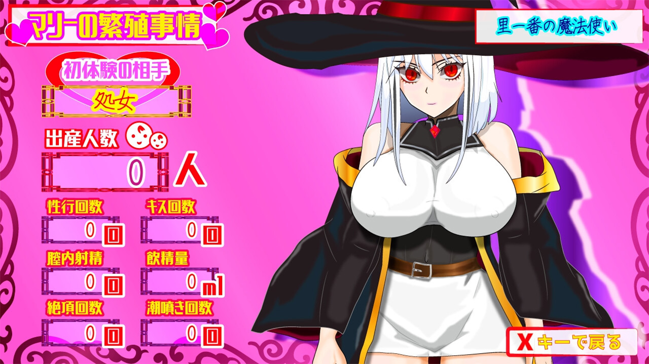 ▲初体験の相手や性行為の回数、出産数などが記録されるマリーのエロステータス。儀式を阻止し続ければ、処女クリアも可能だ