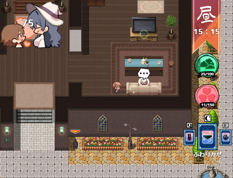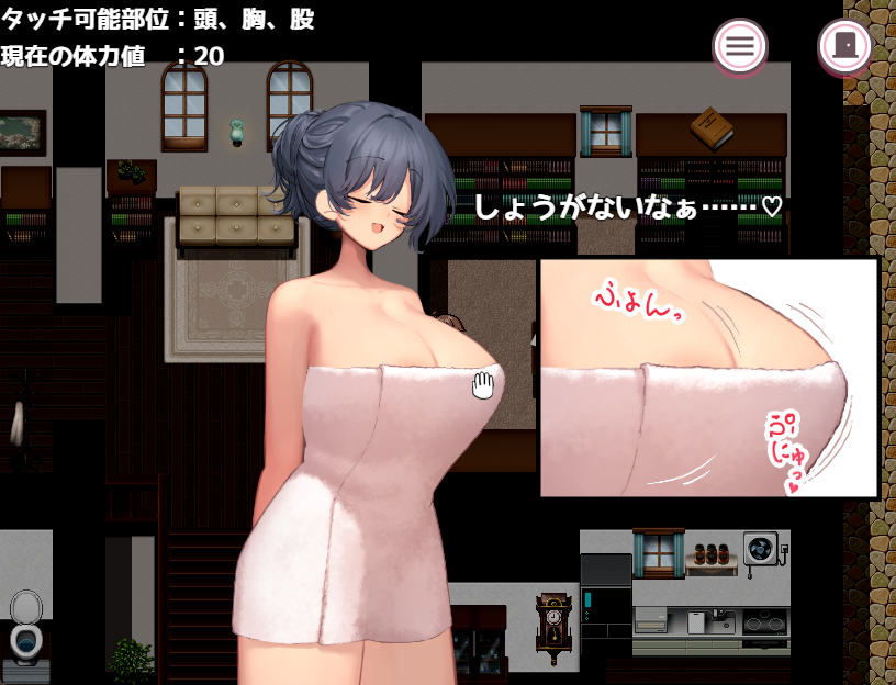 一日の時間帯によって魔女さんがマップ内(魔女さんのお家)を歩き回るので、移動した先で発生するイベントを見るも良し、魔女さんにイタズラを仕掛けるも良し、さらに甘えてみるも良しと、好きなことをするスローライフが展開♪