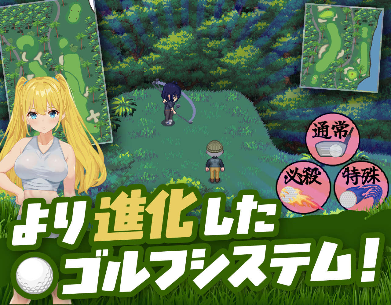 2024年に発売され、あっという間に累計で販売数3万本を突破したサークル・たぬきハウスの人気作『ドピュッとゴルフ伝説』に新要素を追加するDLCが登場。