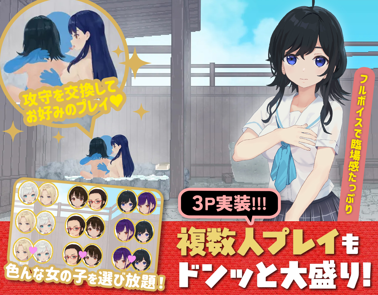 本編キャラクターの中からペアを選んでの複数プレイや、妊娠モード、おしっこ、バイブプレイといったこだわりのシチュエーション等、様々なシーンが追加されているのだ!!