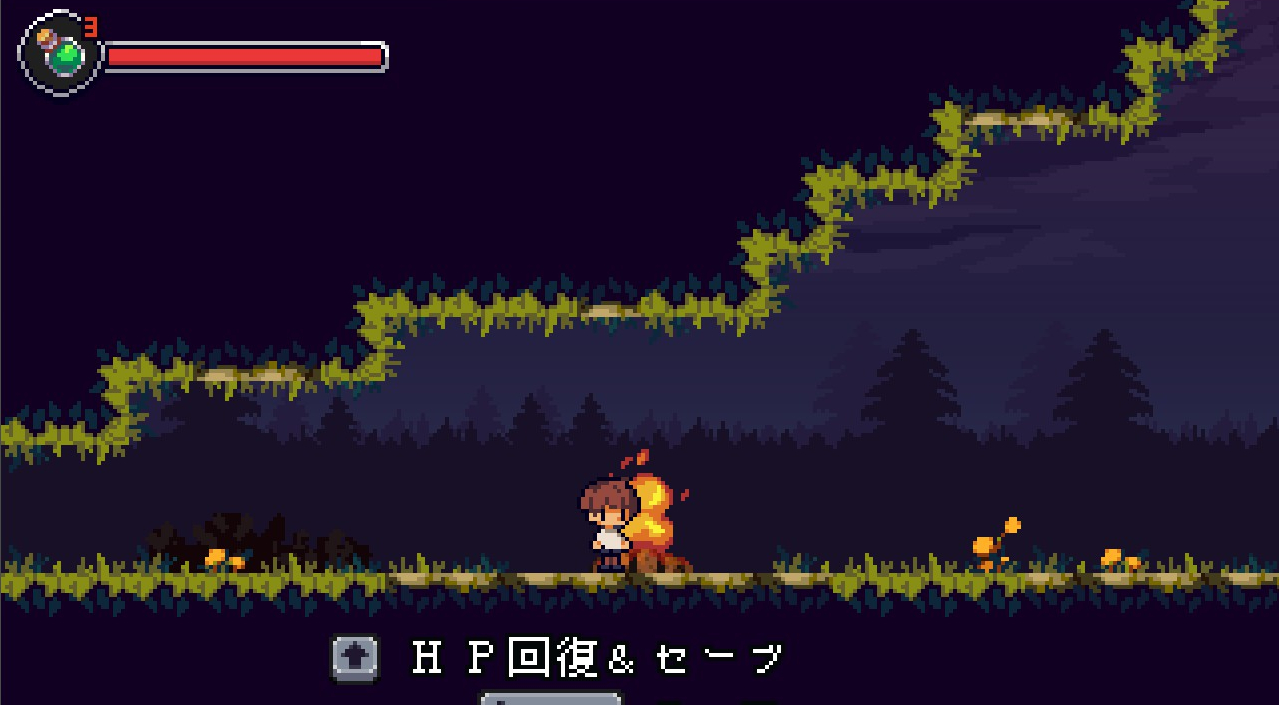 ▲チュートリアルで操作方法を覚えよう♪ 操作方法は極めてシンプルで、カーソルキーで左右移動。Zで攻撃、xでジャンプ、cで回転となっている。コントローラーにも対応しているぞ!!