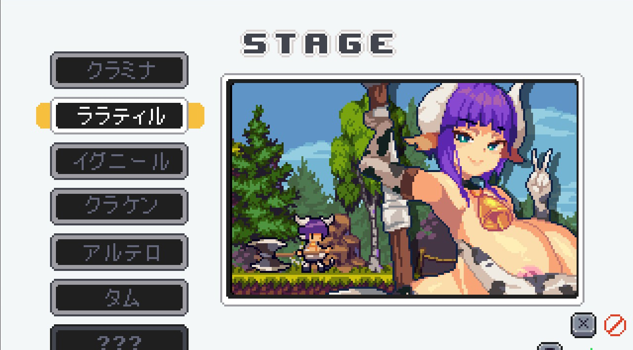 ▲7つのステージにはそれぞれに個性豊かな魔物娘が7人登場。ドット絵ながらセクシーさも超アピール!!