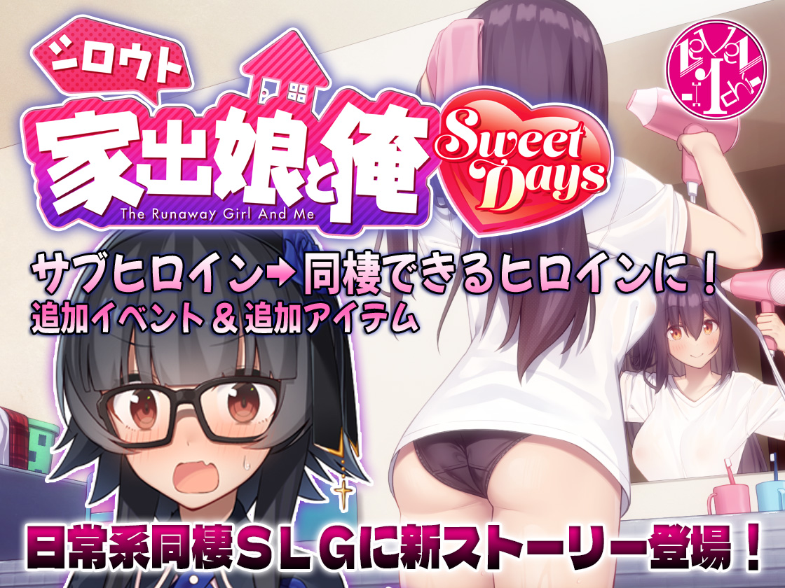 今回レビューをしますのは、サークル・レベル1の『シロウト家出娘と俺 Sweet Days』。本作は各配信サイトでの合計販売数が60000本以上という、家出娘と同棲する日常系SLG『シロウト家出娘と俺』の、大型DLCコンテンツとなっています。