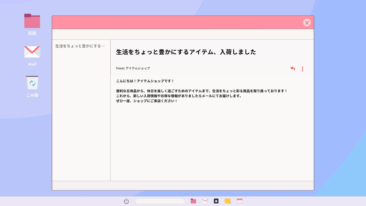▲基本画像の画面下でPCマークをクリックするとストーリー進行のヒントや新商品の入荷を教えてくれるメールや付箋アプリ(目標やイベント条件)、さらにヒロインとのHシーンやイベントを閲覧できる記録を選択できるのだ!!