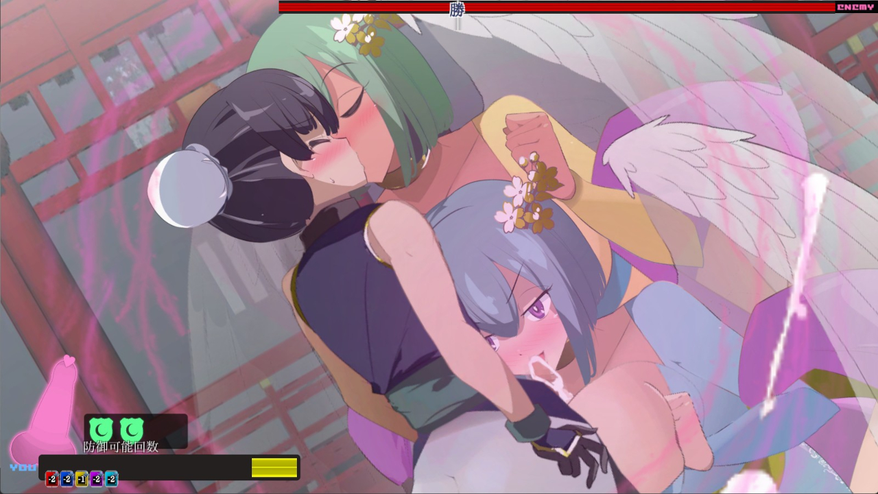 本作は、悪いおねえさんに負けない闘士を目指していく育成アクション。ターン制の育成システムがベースになっているが、敵おねえさんとの戦闘中にHな攻撃を受けることになり、うまくガードしないと弱体化。敗北=誘惑エロ攻撃を受けての射精大ダメージ&ターンロス発生のループが発動してしまう!!