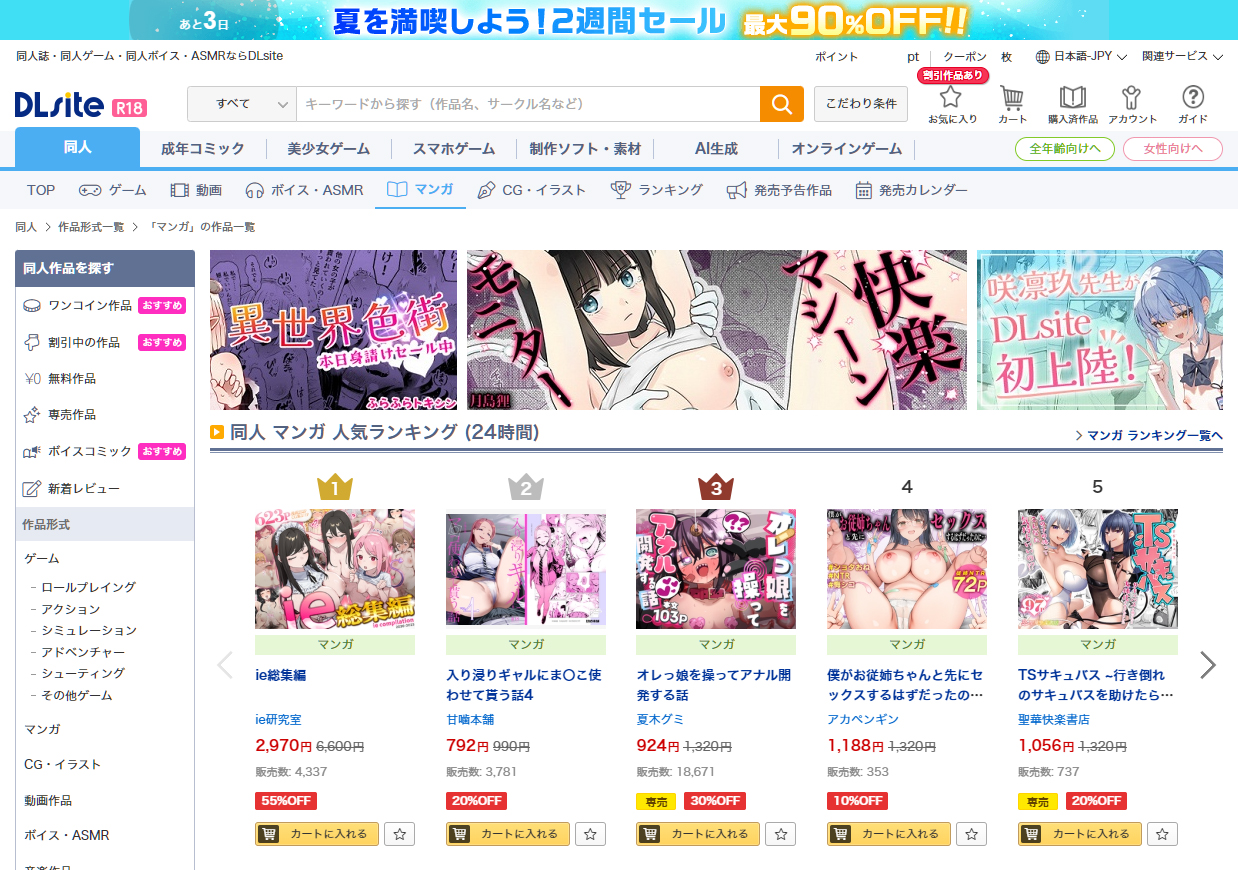 FANZAとDLsiteで毎年恒例の夏のビッグセールが開催中だ。