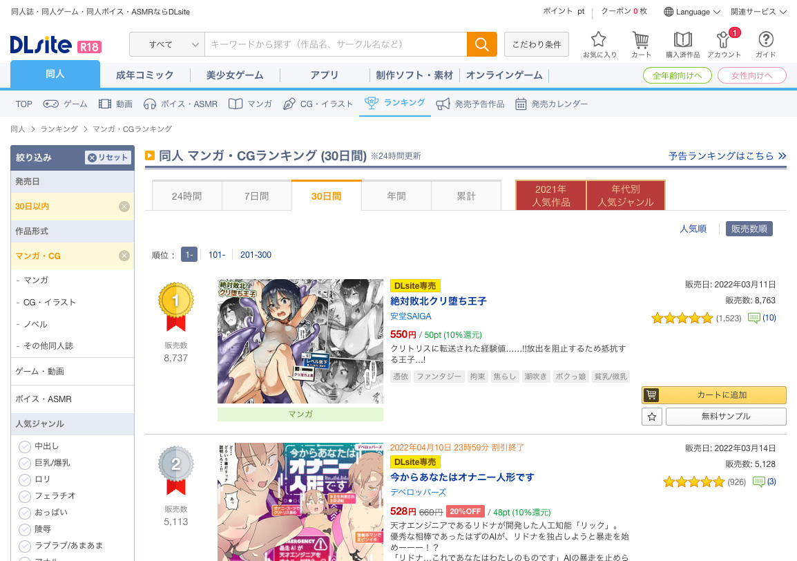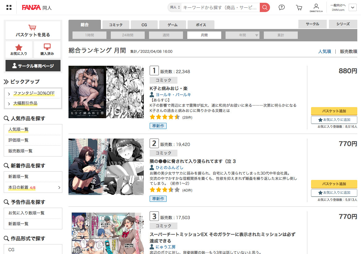 同人 マンガ・CGランキング