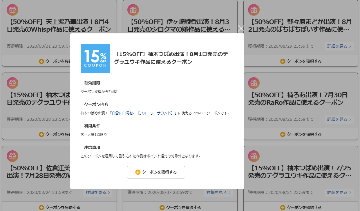 ▲FANZA(画像上)では過去作が50%OFF、DL.siteでは最新作のクーポン配布など、各販売サイトでも猛プッシュ中だ