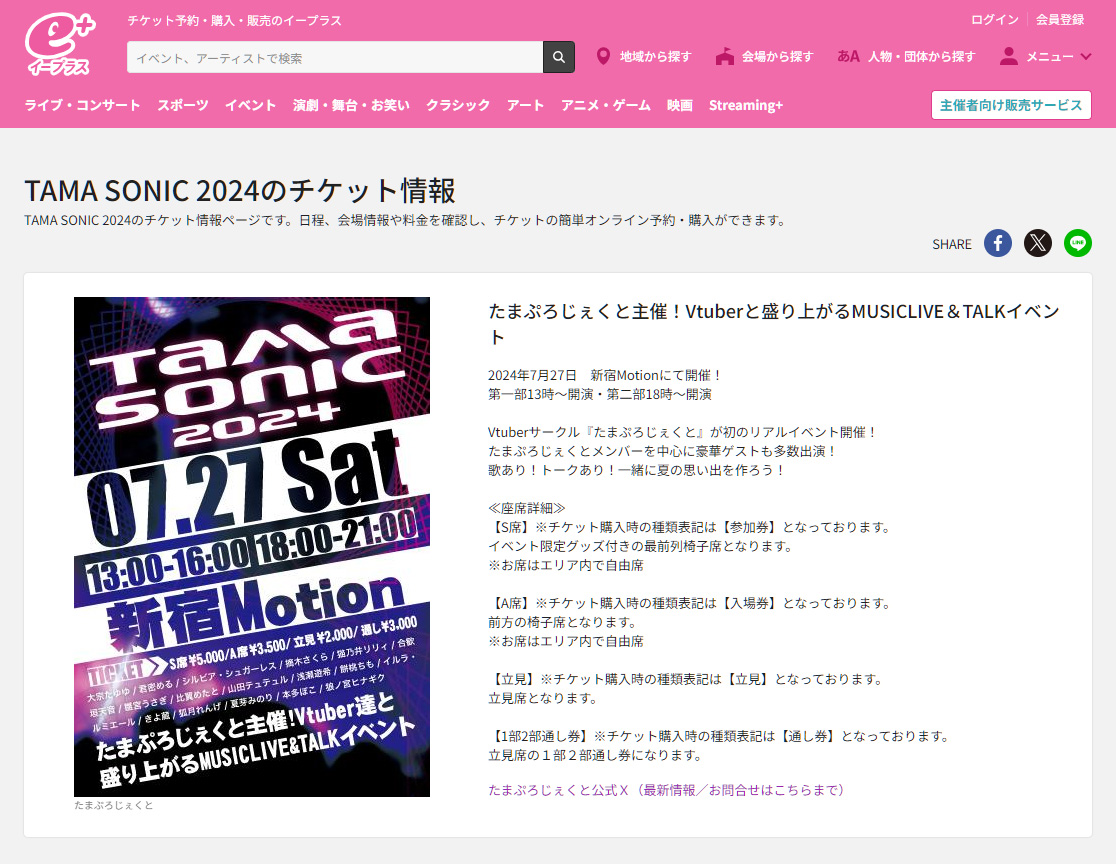 今年の夏は「TAMA SONIC 2024」で決まり!! 歴史的なリアルイベントになりそうなのでファンは絶対に参加すべし!!