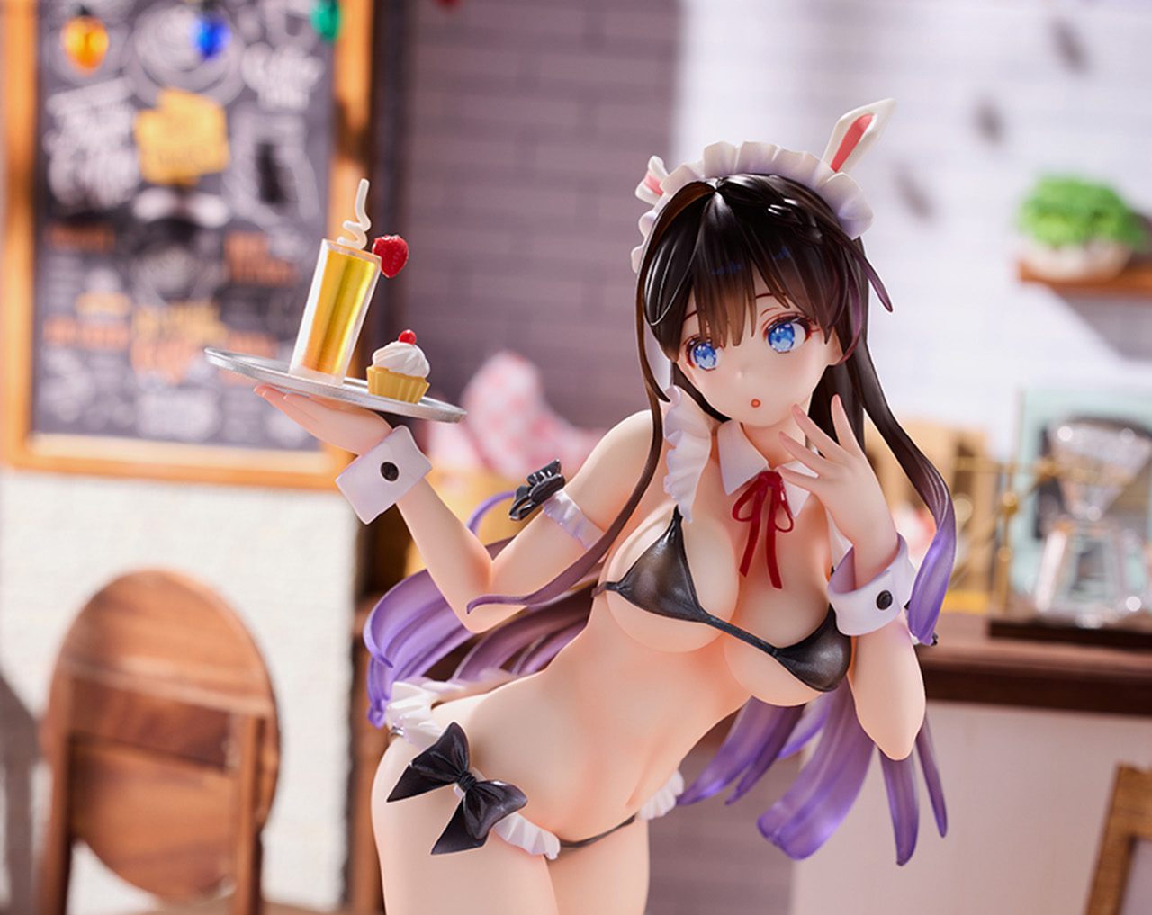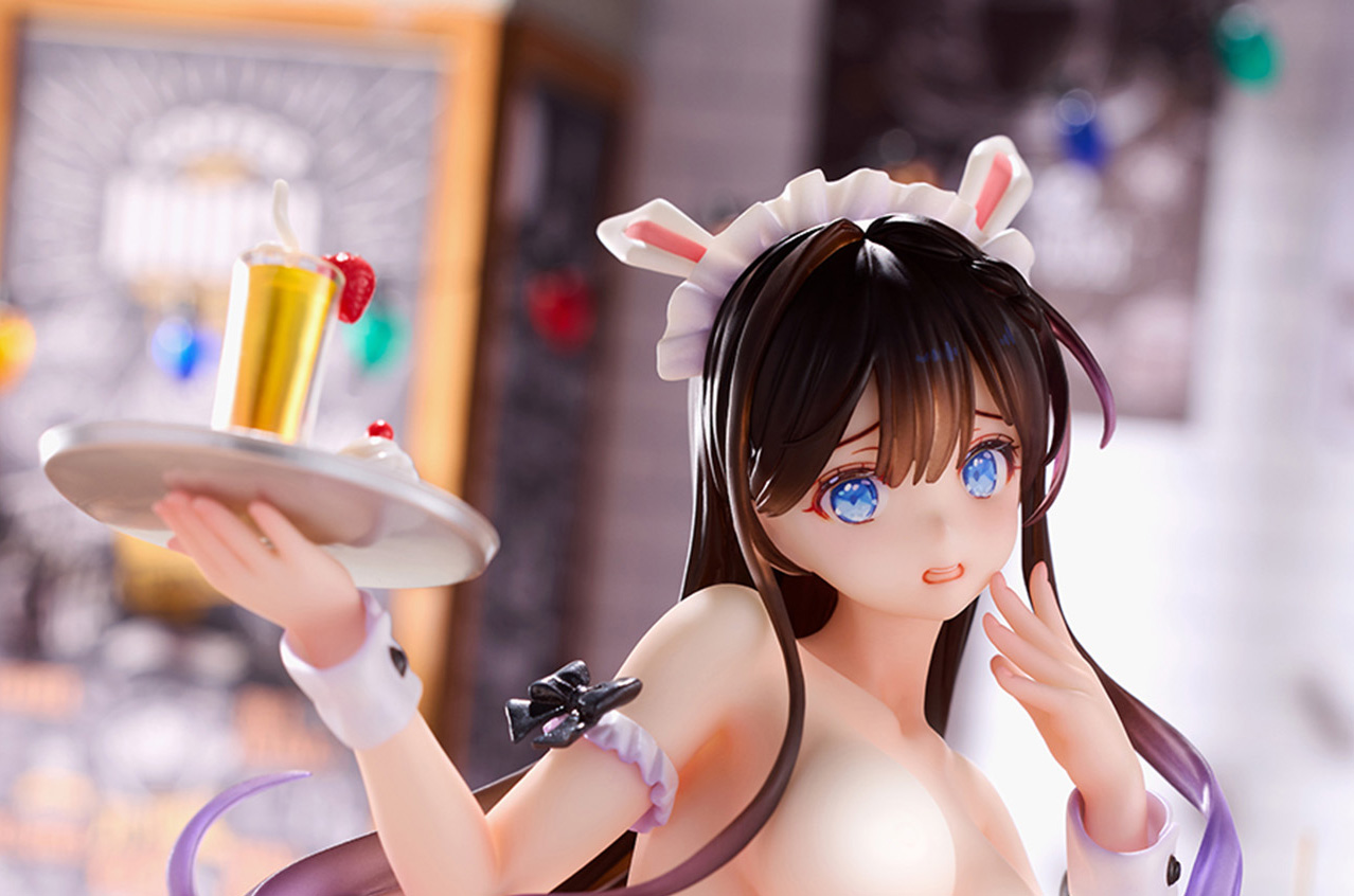 数々の名作美少女フィギュアを排出しているスカイチューブが、今度は人気イラストレーター・DSマイル氏のオリジナルキャラクター「ココア」を1/6スケールで立体化!! 黒の極小ビキニを著たバニーのウエイトレスで、豊満なボディとあどけない表情が男心をソソるのだ。衣装もセクシーながらフリルやリボンをあしらって可愛らしい雰囲気に仕立てており、彼女の魅力を引き出しているぞ。白いニーソもキュートで、いつまでも愛でていたい!!