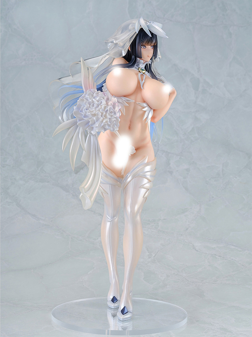 豊満でツンと上を向いたおっぱいとキュッと括れたウエスト、張りのあるお尻と美ボディな双羽のイラストを見事に再現し、リアリティがあってうっとりするような造形に仕上がっているぞ。布地が少なく、胸や秘部を露出した特徴的なデザインのウェディング衣装も白を基調として透き通るような塗装を施し、上品なエロさを醸し出しているのだ。ウエディング姿の双羽のパートナーが男性なのか女性なのかも気になるところだ!?
