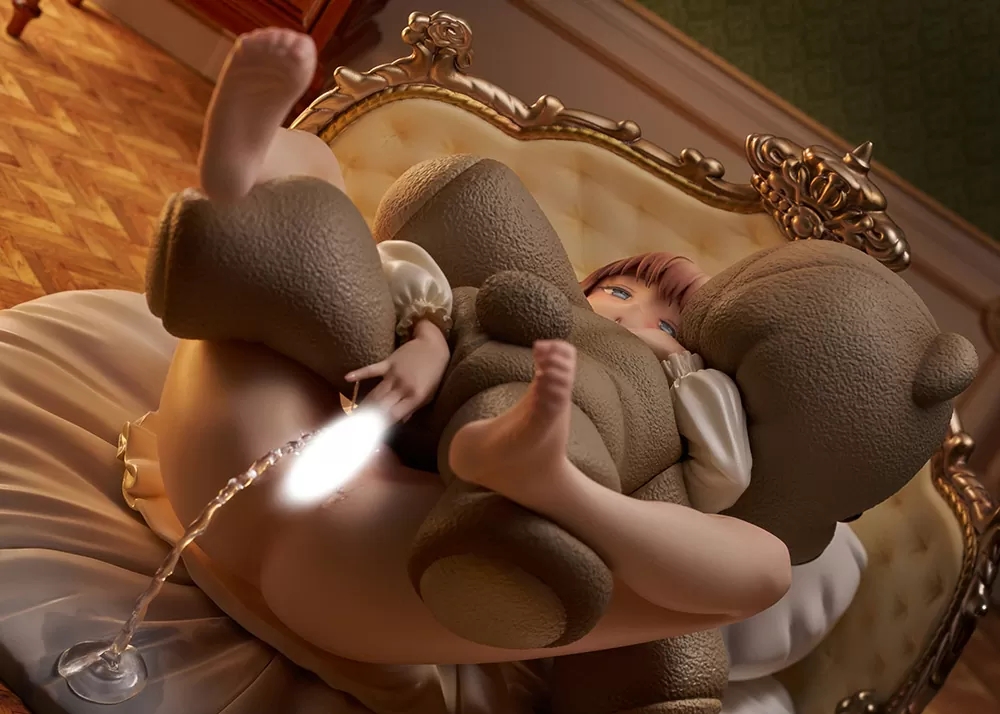 ギューッと抱きしめた大きなクマのぬいぐるみをはじめ、差し替えパーツも多数用意されているので、さまざまなシチュエーションのえちえちご令嬢を楽しめちゃうのだ。