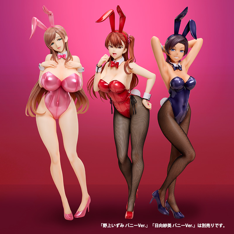 ▲同じBINDingの『イジラレ~復讐催眠~』野上いずみ、日向紗英のバニーフィギュアと並べるとこんな感じ。全部コンプして催眠ハーレムモノの主人公になりきって楽しんじゃおう♪
