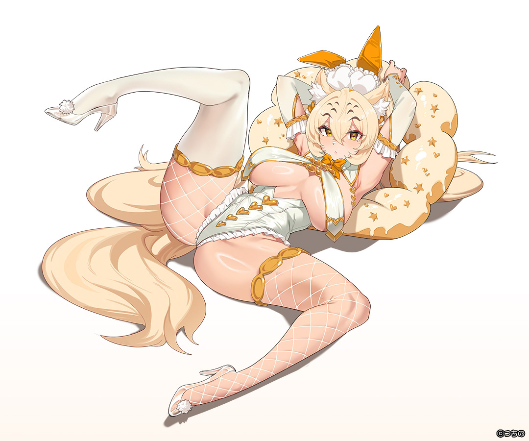 白い衣装に負けないほどに透き通った美しい素肌、たっぷりの長髪とふさふさの尻尾、キリッとした釣り目やきつね色の美味しそうなクッション…等々。精緻に作られた細部がムッチリボディを強調する、素晴らしい出来映えを堪能しよう。