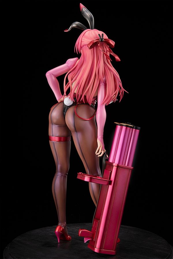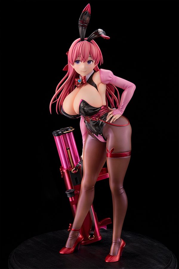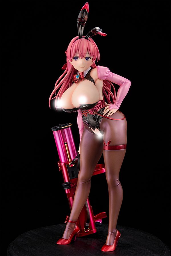 衣装の光沢表現を得意とする漫画家・左藤空気氏が、完全監修で作り上げたオリジナルキャラクター「皇木 新奈」がフィギュア化。昼間の新奈は普通の女子学生。しかしその正体は、愛用のロケットランチャー「ドレッドパーティー」をトレードマーク担いで宇宙を股に掛ける賞金稼ぎ「バウンティ・ニーナ」なのだ!! 美しい光沢のバニースーツ型衣装からは、タプタプのスライムおっぱいと、タイツに包まれたお尻と美脚を大胆露出。全体的にピンクと黒の色合いでまとめ上げられ、清純な顔と妖艶さのギャップが醸し出されているぞ♥