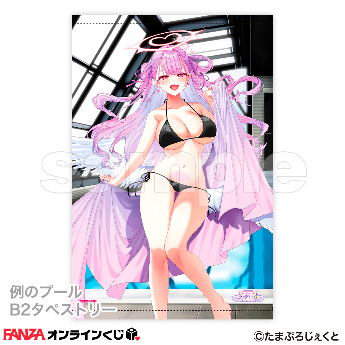 AV撮影で有名な“例のプール”で過ごすVTuberの描き下ろし水着姿のイラストを使用したB2タペストリー(サイズ:縦725mm×横515mm)。5人それぞれが布面積の小さなビキニに身を包み、惜しげもなく肌を露出させている姿は激シコ確定♥