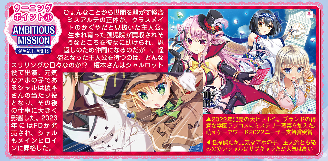 ▲榎本さんの印象深い作品として真っ先に名前が上がる『AMBITIOUS MISSION』(SAGA PLANETS)。シャルは彼女にドンピシャな役。アホの子パワーがノリノリすぎてスタッフに抑えてもらうよう言われたとか