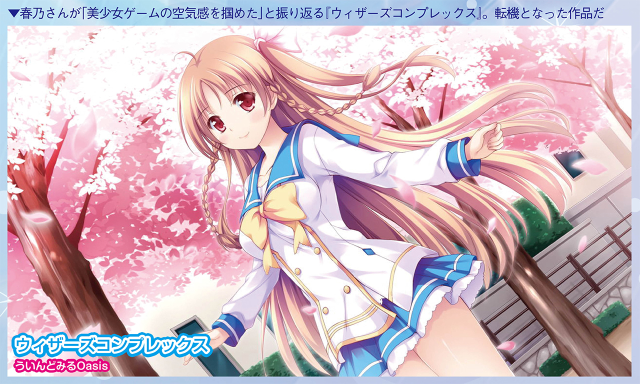 春乃:多分『世界と世界の真ん中で』で関係者の皆さんにも認めていただけたのかもしれません。それと2016年の『ウィザーズコンプレックス』(ういんどみるOasis)で美少女ゲームの空気感をちょっと掴むことができたのかな?とも思っているんです。