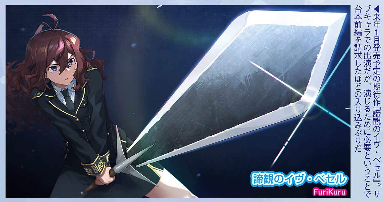 ▲新ブランドFuriKuruの処女作『諦観のイヴ・ベセル』ではサブキャラでの出演ながら、ブランド1作目からの参加というのは貴重な経験だと語る