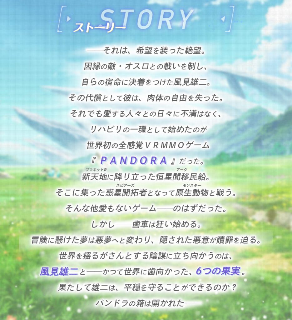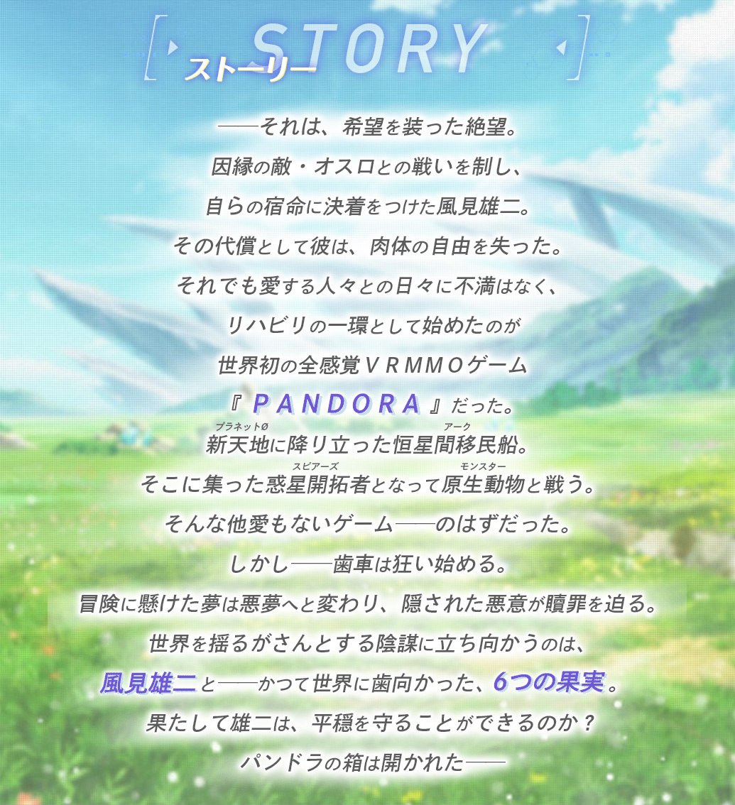 VRMMOゲーム「PANDORA」を舞台に、雄二と6人の少女たちが世界を揺るがさんとする陰謀に立ち向かう!!