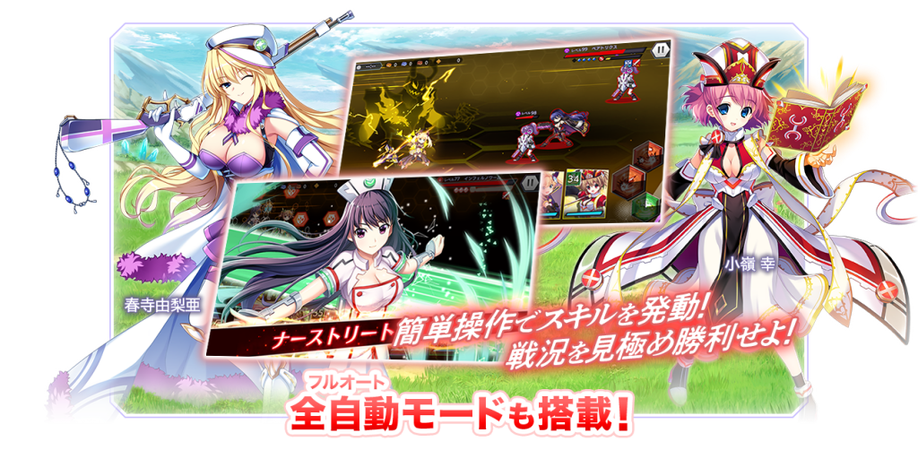 ▲ヒロインごとに設定されたスキルを発動し戦いを有利に進めるべし!! 全自動モードも搭載されているので手軽にプレイできるぞ♪