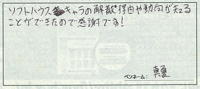 最:真夏さんは、7月号に掲載した読物特集「ソフトハウスキャラ解散の真実」が良かったようです。