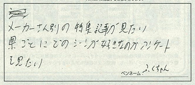最:ふくちゃんさんからは「メーカーさん別の特集記事が見たい」とのリクエストをいただきました。