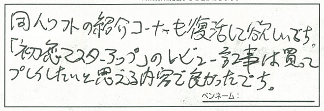 最:同人ソフトの紹介コーナーは7月号で掲載していた「同人ゲームFREAKS」のことですね。8月号では掲載していませんでしたが、9月号で復活してバッチリ掲載していますよ!!