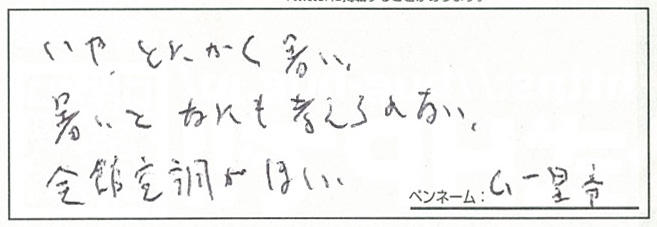 Show.:そうですね。エアコンの効いた部屋はいいんですが、冷気の届かないトイレとかは蒸し風呂みたいになりますから…。